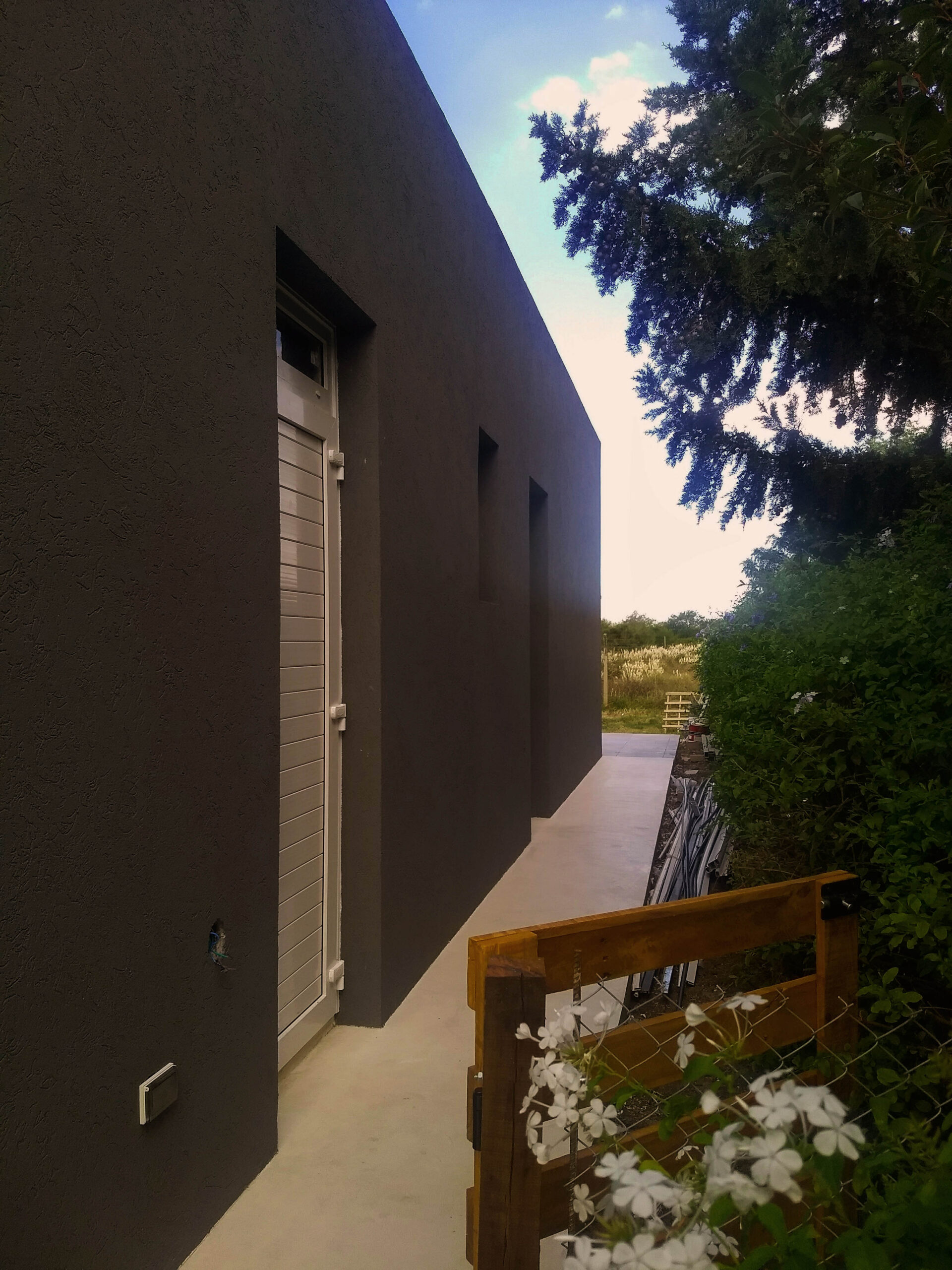 Se proyectó una vivienda a ejecutar en un barrio cerrado en la cual los espacios se ordenan alrededor de un patio interno generando una doble circulación que separe los ambientes privados de los públicos de la vivienda, los cuales se abren hacia el exterior donde su ubica la galería que recibirá una pérgola en el fondo.