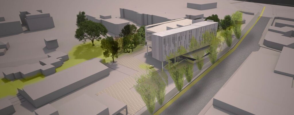 La propuesta del edificio surge como una articulación material entre el tejido urbano (Comunidad) y el hospital Muñiz (cuerpo médico) que intenta incorporar tecnología actual, rescatando la identidad y escala presente en el ámbito a intervenir.