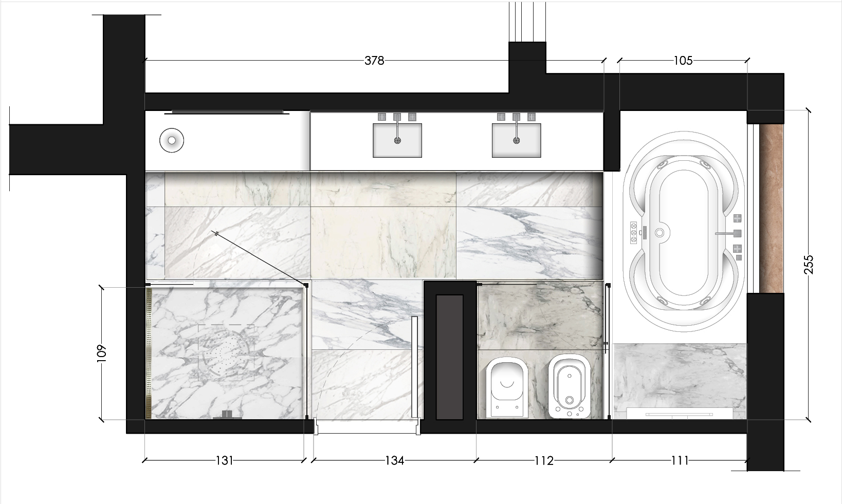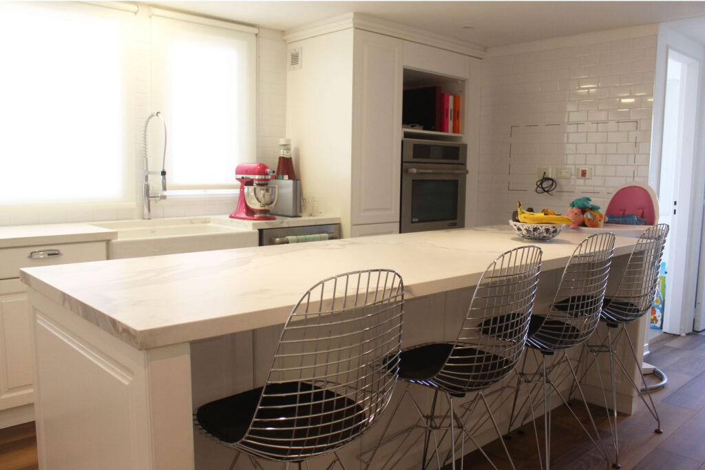 La propuesta debía contemplar el rediseño de instalaciones centrales posibilitando la ampliación de la cocina e incorporación de una isla. A su vez se modificó la distribución de los espacios de servicio, se unificaron ambientes y se redefinieron destinos en función de las nuevas necesidades de habitar. A su vez se favoreció imagen más actual y se refuncionalizaron las instalaciones incorporando nuevas tecnologías.